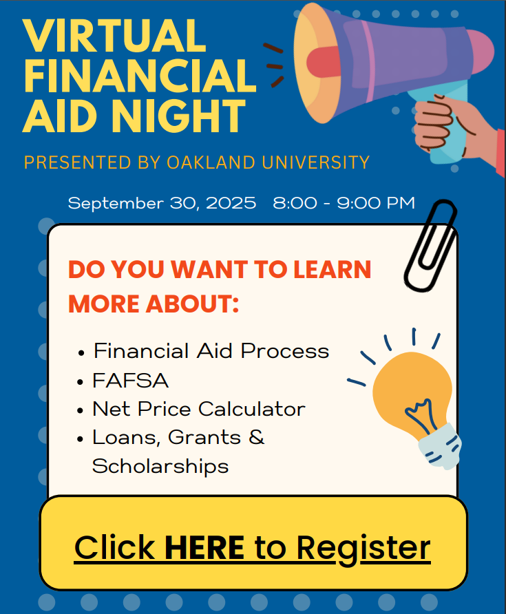 • Attend Oakland University's Virtual Financial Aid Night, Sept. 30th
