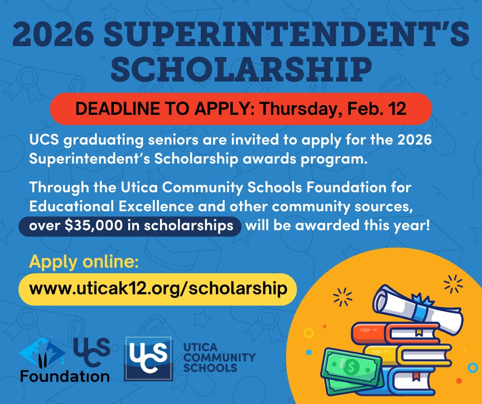 - $3000 Utica Lions Club Scholarship — DUE 5/30/26