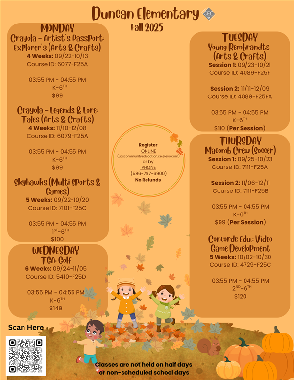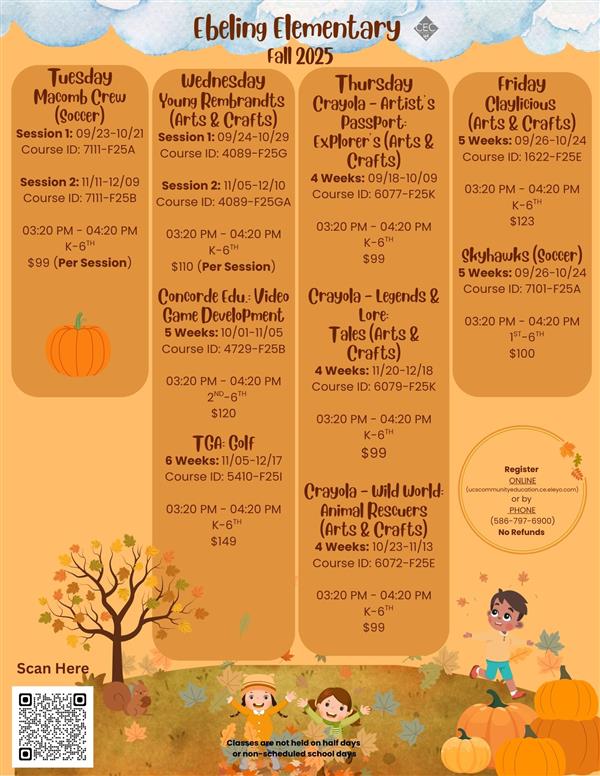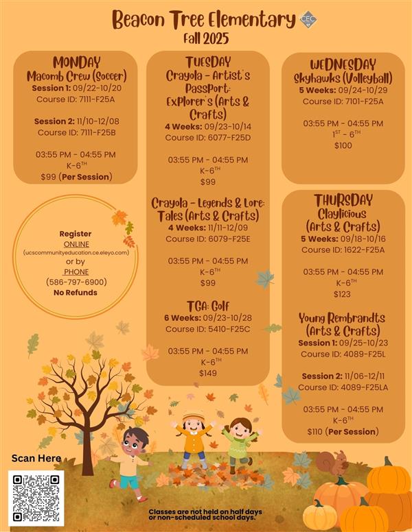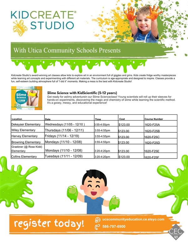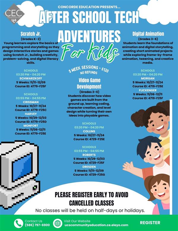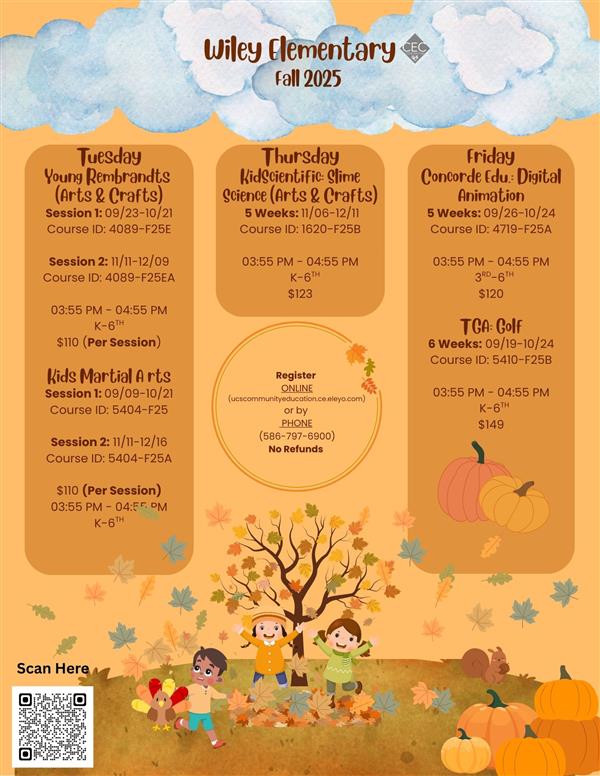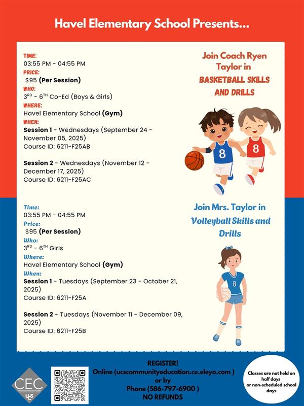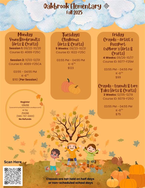 • Registration for all UCS Enrichment classes and camps is completed using the online registration system, Eleyo. You must create an account in Eleyo before you will be able to register for any classes. Parents should create the account in their name, then add their child to their account. Click on the "Register Here" link below to connect to Eleyo.