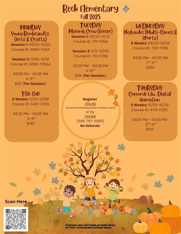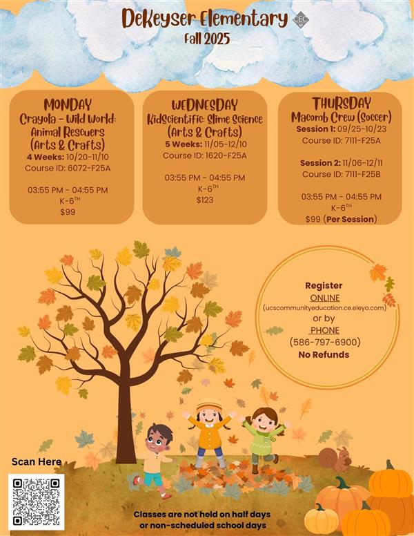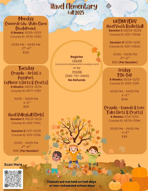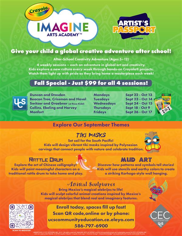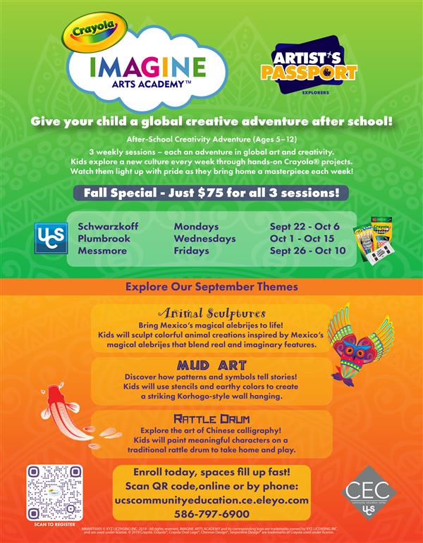• Registration for all UCS Enrichment classes and camps is completed using the online registration system, Eleyo. You must create an account in Eleyo before you will be able to register for any classes. Parents should create the account in their name, then add their child to their account. Click on the "Register Here" link below to connect to Eleyo.